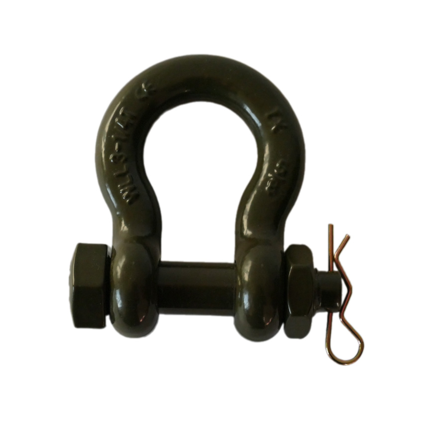 Nato Green Omega-Shaped Steel half eye Shackle with nut and nail safety 5/8″